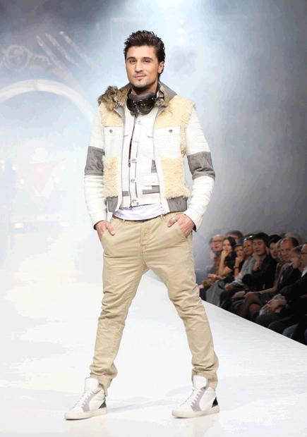 Дима Билан дефилирует по подиуму на показе коллекции Shiyan & Rudkovskaya в рамках Volvo-недели моды в Москве, Россия, 3 апреля 2011.