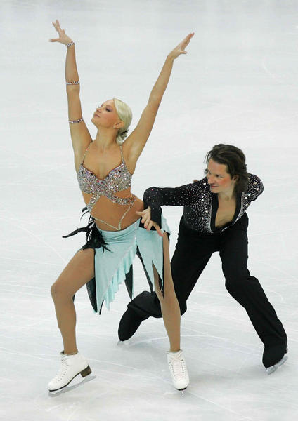 На фото: Оксана Домнина (Oksana Domnina) и Максим Шабалин (Maxim Shabalin) из России. На чемпионате мира по фигурному катанию в Токио в соревнованиях танцевальных пар после исполнения оригинального танца лидирует болгарский дуэт Альбена Денкова и Максим Ставиский, которые защищают на этом турнире чемпионский титул. На второе место по сумме двух программ судьи поставили канадцев Мари-Франс Дюбрель и Патриса Лаузона, а Танит Белбин и Бенджамин Агосто (США) пока претендуют на бронзу. Российские фигуристы Оксана Домнина и Максим Шабалин перед произвольным танцем потеряли одну позицию и занимают в общем зачете четвертое место, отставая от лидеров на 1,89, а от третьего места – на 1,49 балла. Их партнеры по сборной Яна Хохлова и Сергей Новицкий - шестые. Призеры чемпионата мира-2007 в танцах на льду будут определены сегодня после исполнения участниками произвольной программы.