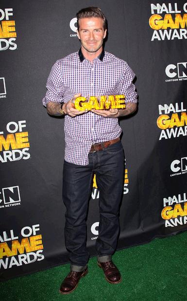 Футболист Дэвид Бекхэм (David Beckham) на 2-й ежегодной церемонии вручения премии Cartoon Network Hall of Game Awards в зале Barker Hangar, Санта Моника, Калифорния, США, 18 февраля 2012.