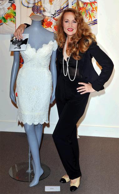 Бывшая модель Джерри Холл (Jerry Hall) выставила на аукцион Sotheby’s свои вечерние платья, среди которых свадебное платье, в котором она выходила замуж за вокалиста группы Rolling Stones Мика Джаггера (Mick Jagger) в 1990 году, Лондон, Великобритания, 9 июня 2008.