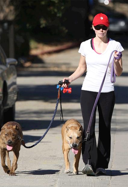 Джессика Бил (Jessica Biel) гуляет с собаками, Лос-Анджелес, США, 13 января 2009.