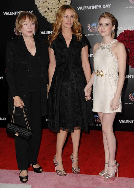 Премьера фильма «День святого Валентина» (Valentine’s Day), Лос-Анджелес, 8 февраля 2010. На фото — актрисы Ширли Маклейн (Shirley Maclaine), Джулия Робертс (Julia Roberts) и Эмма Робертс (Emma Roberts).