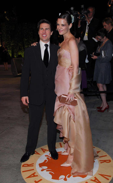 Ежегодная вечеринка после вручения премии "Оскар 2007" в Лос-Анджелесе, 25 февраля 2007. На фото: Том Круз (Tom Cruise), Кэти Холмс (Katie Holmes). Церемония вручения наград американской киноакадемии уже прошла, но страсти все еще кипят. Конечно, на церемонии главное - это кино, но не менее значимо для светского общества и то, какие наряды выбирают знаменитости. Недаром церемонию называют своеобразным звездным подиумом. Модные критики изгаляются по этому поводу вот уже несколько дней подряд. По их мнению, Кэти Холмс, надев прозрачное шелковое платье из органзы от Armani Prive, продолжила свое гибельное увлечение чересчур открытыми нарядами.