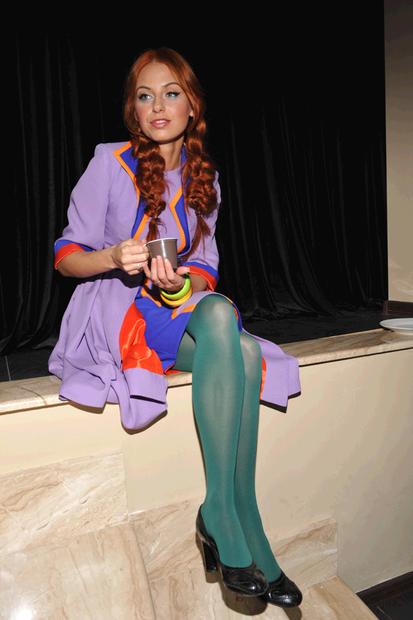 Презентация книги «Альфонсы или любовные мошенники» и весеннее дефиле Elena Lenina by Cartas от Лены Лениной, Москва, Россия, 10 марта 2010. На фото — Ирина Забияка.