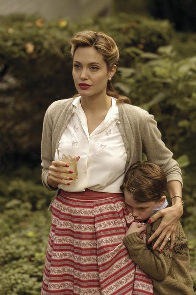 Кадры из фильма "The Good Shepherd", 2006. На фото: Анджелина Джоли (Angelina Jolie) и Остин Уильямс (Austin Williams). На нью-йоркской премьере нового фильма с участием Анджелины Джоли "The Good Shepherd" (на русский язык название фильма переведено как "Ложное искушение" или "Благие намерения"), актриса появилась в платье с открытой спиной - очевидно, для того, чтобы продемонстрировать во всей красе свои многочисленные татуировки на шее, левой лопатке и пояснице. Надпись на шее (на английском языке) гласит: "Знайте свои права". Текст, нанесенный на лопатку, прочитать не смог никто, поскольку он написан на языке кхмеров - носители этого языка, в основном, проживают в Камбодже. Татуировку на пояснице рассмотреть как следует не удается, так как видна она не целиком, но знатоки настаивают: на теле Джоли красуется не менее 12-ти татуировок, среди которых - имя ее бывшего мужа Билли Боба Торнтона, вписанное в затейливую виньетку.