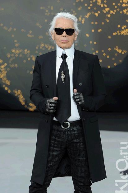 Модный дизайнер Карл Лагерфельд (Karl Lagerfeld) на показе бренда Chanel в рамках Недели моды в Париже, Большой дворец, Париж, Франция, 5 марта 2013.