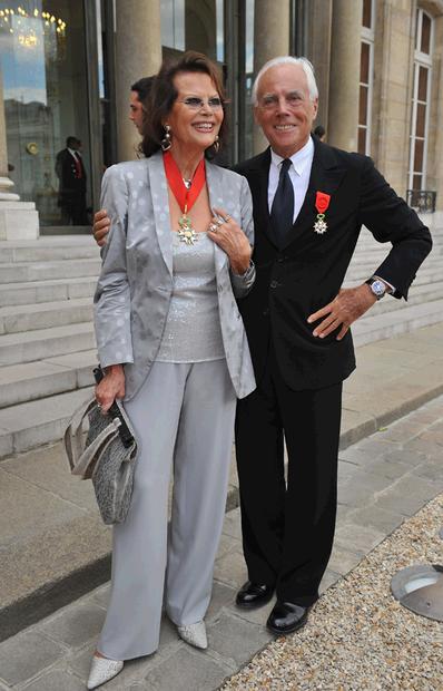 Джорджио Армани (Giorgio Armani) и Клаудиа Кардинале (Claudia Cardinale) на церемонии вручения ордена Почетного Легиона (Legion of Honour) в Париже, 3 июля 2008.
