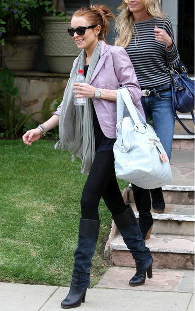 Актриса Линдси Лохан (Lindsay Lohan) выходит из салона красоты Andy Lecompte Salon в Беверли-Хиллз, Лос-Анджелес, 11 июня 2009.