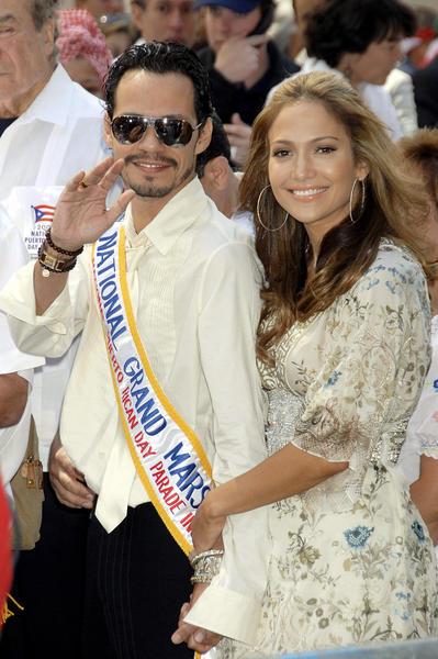 Парад в честь Дня Пуэрто-Рико в Нью-Йорке, США, 11 июня 2006. На фото: Марк Энтони (Mark Anthony), Дженнифер Лопес (Jennifer Lopez). На недавнем вручении премии "Женщины в кино", несмотря на главную интригу, связанную с именами победительниц, негласную пальму первенства гости отдали латиноамериканской актрисе и певице Дженнифер Лопес. Едва утихли разговоры по поводу седины Лопес, которую она продемонстрировала на одной из светских вечеринок, как Дженнифер снова на первых полосах газет и журналов. Но в этот раз модные критики не стали корить певицу, а наоборот, восхитились ее внешним обликом: сменой цвета волос да и самой прически.