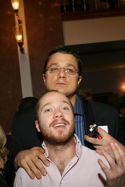 Церемония вручения театральной премии "Чайка", Театр им. Моссовета, Москва, 18 декабря 2006. На фото - Евгений Стычкин и Алексей Макаров. Сын Любови Полищук, актер Алексей Макаров, остался без наград, но на недостаток внимания пожаловаться не мог. По понятным причинам Алексей оказался в центре внимания фотографов. К тому же он пришел не со своей давней подругой Екатериной Семеновой - рядом с сыном Любови Полищук была новая девушка, привлекательная брюнетка, которой Макаров подарил несколько белых роз. Напомним, что Алексей встречался с Семеновой около двух лет, но совсем недавно они расстались. Екатерина, кстати, тоже пришла на церемонию и тоже с новым кавалером.