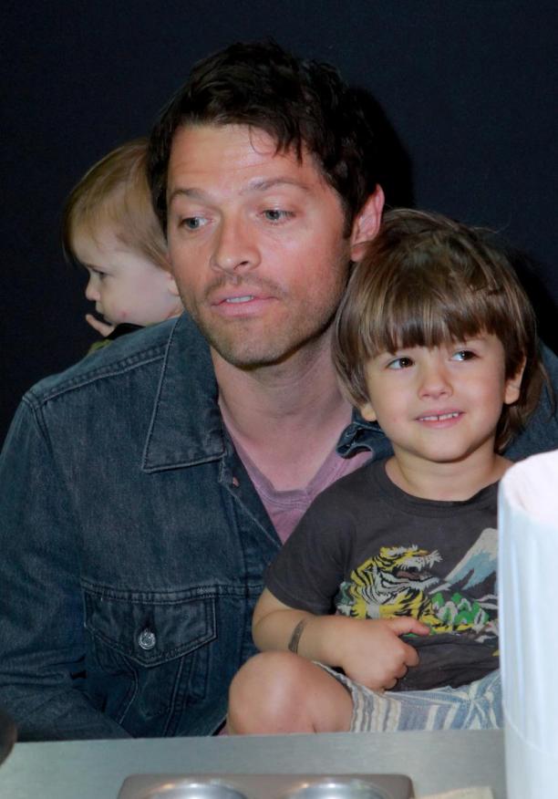 Актер Миша Коллинз (Misha Collins) и его сын Уэст (West) на гастрономическом празднике All-Star Chef Classic, Лос-Анджелес, США, 23 марта 2014.