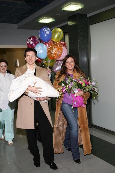 Выписка Юлии Началовой из роддома, "Центр планирования семьи", Москва, 8 декабря 2006. На фото - Юлия Началова, Евгений Алдонин и их дочь Вера. На днях певицу Юлию Началову выписали из роддома с дочуркой Верочкой. Счастливый отец, футболист ЦСКА и сборной России Евгений Алдонин, подарил супруге эксклюзивные серьги Chopard (минимальная стоимость подобных украшений - тысяча евро). Несмотря на то что спустя неделю после родов молодая мама и ее дочурка чувствовали себя хорошо, назначенную выписку певицы пришлось отложить на день. Об этом попросил лично папа Алдонин. Дело в том, что рейс, которым футболисты ЦСКА возвращались в Москву после игры, из-за плохой погоды задержали на несколько часов. Из аэропорта Алдонин сразу помчался в роддом, но забирать своих девчонок сразу не стал. Им с женой хотелось, чтобы этот торжественный момент проходил празднично, днем, в присутствии близких, а не вечером в серых зимних сумерках.