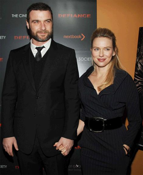 Лев Шрайбер (Liev Schreiber), Наоми Уоттс (Naomi Watts) на показе фильма Defiance, Нью-Йорк, США, 12 января 2009.
