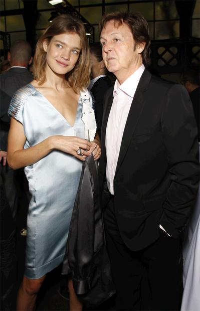 Модель Наталья Водянова (Natalia Vodianova) и певец Пол Маккартни (Paul McCartney) за кулисами показа коллекции сезона «весна/лето-2009» от Стеллы Маккартни (Stella McCartney) в Париже, Франция, 2 октября 2008.