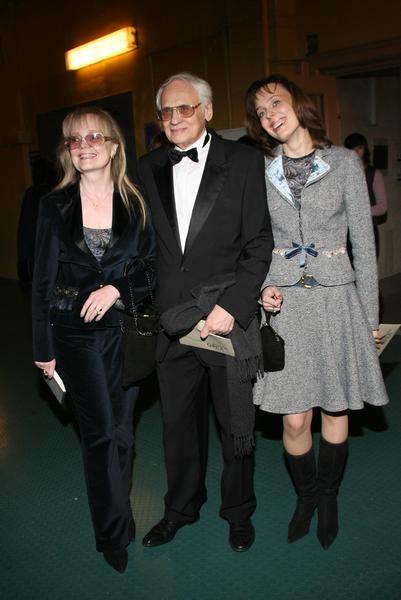 Церемония награждения кинопремией "Золотой Орел", к/с "Мосфильм", Москва, 27 января 2007. На фото - Владимир Наумов и Наталия Белохвостикова с дочерью Натальей. 27 января 2007 года в Москве на киностудии "Мосфильм" состоялась пятая торжественная церемония вручения национальной премии "Золотой Орел". "Золотой Орел" традиционно подводит итога кинематографического года. Самые авторитетные деятели отечественного кино, члены Национальной академии киноискусств выбирают лучших режиссеров, сценаристов, актеров, операторов, награждают самые достойные фильмы и сериалы. В словах благодарности спонсорам Президент академии киноискусств Владимир Наумов заметил: "Российское кино всегда было самобытным и талантливым, но сейчас благодаря вам, дорогие наши меценаты, оно не только талантливое - оно мощное, яркое, зрелищное, уверенное в себе".