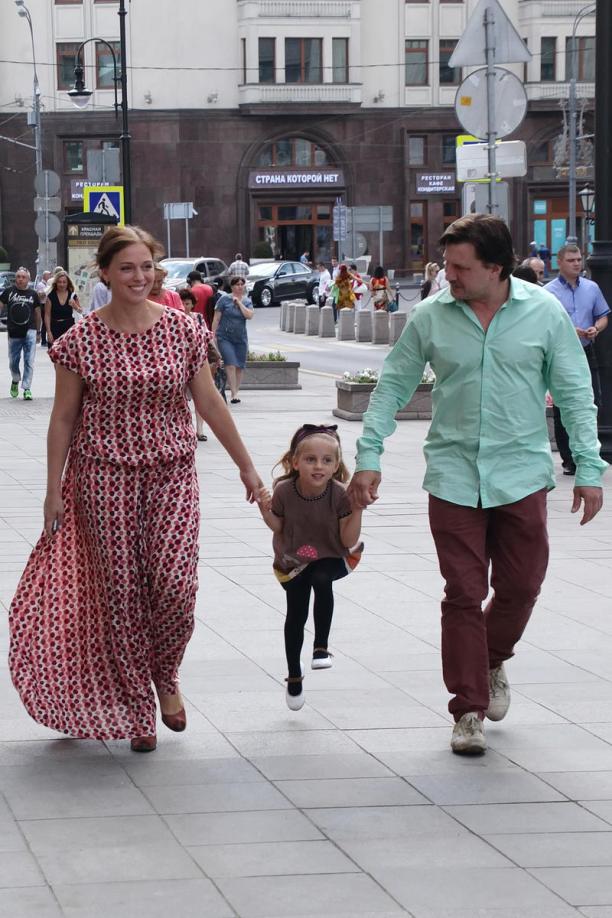 На сбор труппы театра РАМТ после летних каникул Нелли пришла с мужем, актером Александром Гришиным и дочкой Ией.