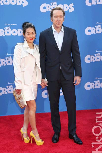 Актер Николас Кейдж (Nicolas Cage) с женой Эллис Ким (Alice Kim) на премьере фильма «Семейка Крудс» (The Croods), кинотеатр AMC Loews Lincoln Square 13 theater, Нью-Йорк, США, 10 марта 2013.