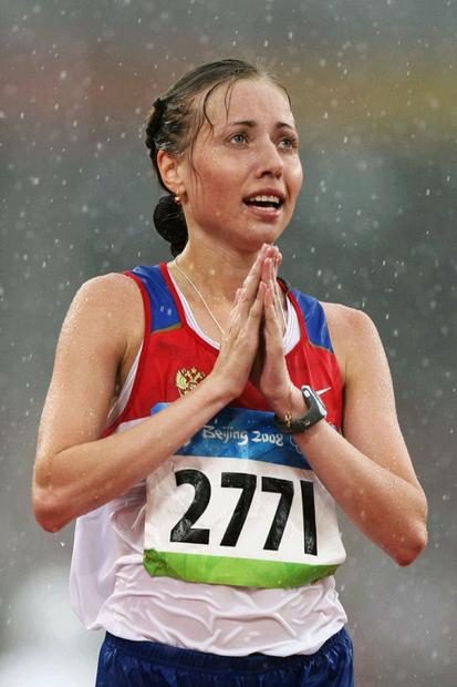 Российская спортсменка Ольга Каниськина (Olga Kaniskina) принесла России 14-ю золотую медаль на Олимпиаде-2008 в Пекине, Китай, 21 августа 2008.