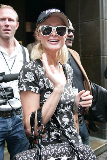 Светская львица Пэрис Хилтон и ее бойфренд Бенджи Мэдден выходят из своего отеля в Копенгагене, Дания, 5 августа 2008. На фото — Пэрис Хилтон (Paris Hilton).
