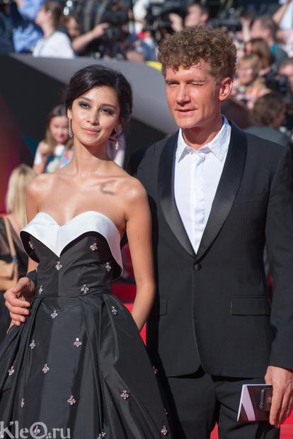 Актриса Равшана Куркова с возлюбленным Ильей Бачуриным на церемонии открытия 35-го Московского международного кинофестиваля, Пушкинская площадь, Москва, 20 июня 2013 года.