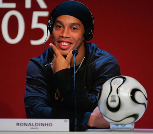 Церемония награждения лучшего футболиста мира-2005. Игрок испанской "Барселоны" бразилец Рональдиньо (Ronaldinho) второй раз подряд был назван ФИФА лучшим футболистом года. В традиционном предновогоднем опросе тренеров и капитанов национальных сборных он набрал 960 очков, обойдя получившего 429 голосов хавбека лондонского "Челси" Фрэнка Лэмпарда и своего одноклубника, камерунца Самюэля Это`О. Лучшей футболисткой года была вновь признана немка Биргит Принц (Birgit Prinz), Цюрих, 19 декабря 2005.