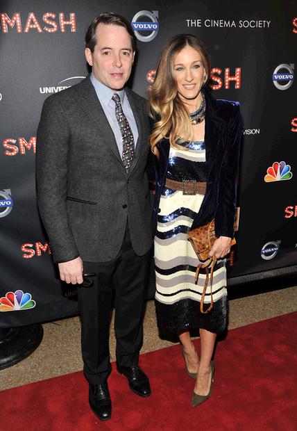 Актёры Мэттью Бродерик (Matthew Broderick) и Сара Джессика Паркер (Sarah Jessica Parker) на премьере фильма «Смэш» (Smash), Нью-Йорк, 26 января 2012.