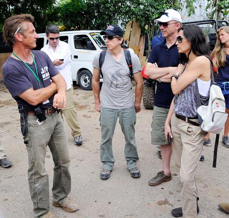 Гуманитарная миссия Artists for Peace and Justice в Порт-о-Пренсе, Гаити, 12 апреля 2010. На фото — Деми Мур (Demi Moore), Пол Хаггис (Paul Haggis), Бен Стиллер (Ben Stiller) и Шон Пенн (Sean Penn) в лагере для вынужденных переселенцев.