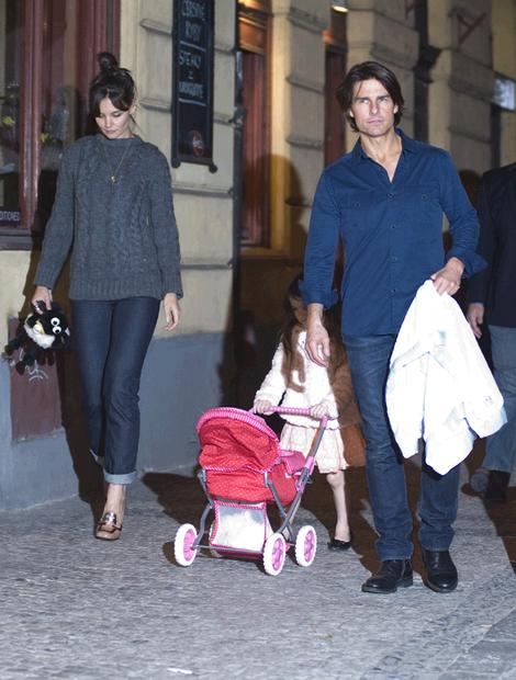 Актер Том Круз (Tom Cruise), его жена актриса Кэти Холмс (Katie Holmes) и их дочь Сури Круз (Suri Cruise) на прогулке в Праге, Чехия, 22 сентября 2010.