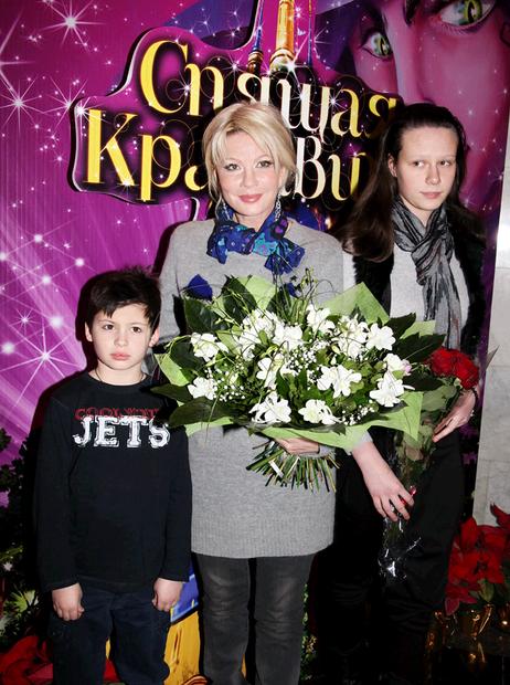 Премьера мюзикла на льду «Спящая красавица», спорткомплекс «Лужники», Москва, 16 декабря 2011. На фото: телеведущая Татьяна Веденеева с гостями премьеры.