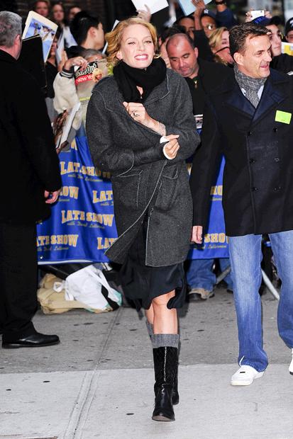 Актриса Ума Турман (Uma Thurman) приехала для участия в телешоу Late Show With David Letterman, Нью-Йорк, 12 октября 2009.