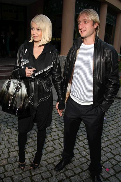 Радиостанция «Серебряный Дождь» отпраздновала свое 13-летие в подмосковном поселке Нахабино, Россия, 7 августа 2008. На фото — музыкальный продюсер Яна Рудковская и фигурист Евгений Плющенко.