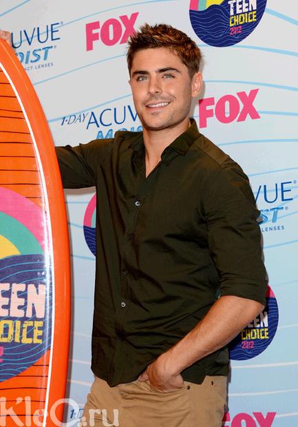 Актер Зак Эфрон (Zac Efron) с наградой в номинации «Лучший киноактер» (Choice Movie Actor) на церемонии вручения премии Teen Choice Awards 2012, кинотеатр Gibson Amphitheatre, Юниверсал-сити, Калифорния, США, 22 июля 2012.