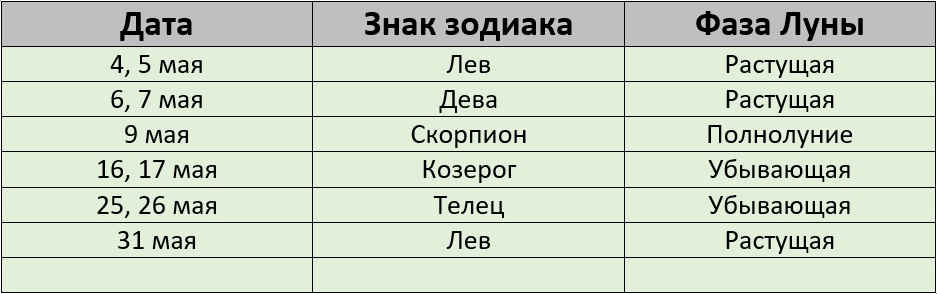 Лунный календарь на май 2025 года. Благоприятные и неблагоприятные дни для стрижки.