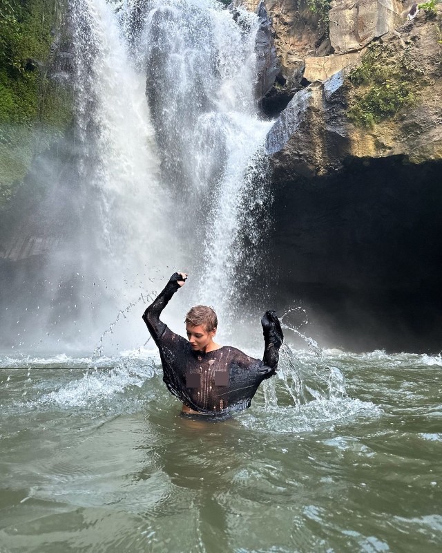 Однако в этот раз внимание поклонников привлекли не волосы Кристины, а ее внешний вид. На фото артистка позировала под водопадом. Из одежды на ней был только тонкий прозрачный свитер, который некоторые комментаторы сравнили с рыболовной сетью. Намокший наряд совершенно не скрывал, что Асмус забыла надеть купальник.